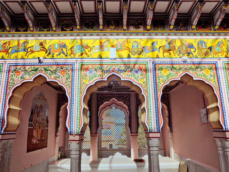 Shekhawati is popularly known as an open air art gallery and Surajagrh is at the heart of it and boasts of many havelis. Walking and camel cart tours are organized to the havelis. The Marwari traders accumulated enormous wealth in their trade of rice, opium, cotton, spices and textiles. The wealth was usually reinvested or sent back home for their families. The affluent marwari families tried to outdo the other in the size and quality of their mansions, giving birth to fine and colourful architecture in the desert region where it was least expected.